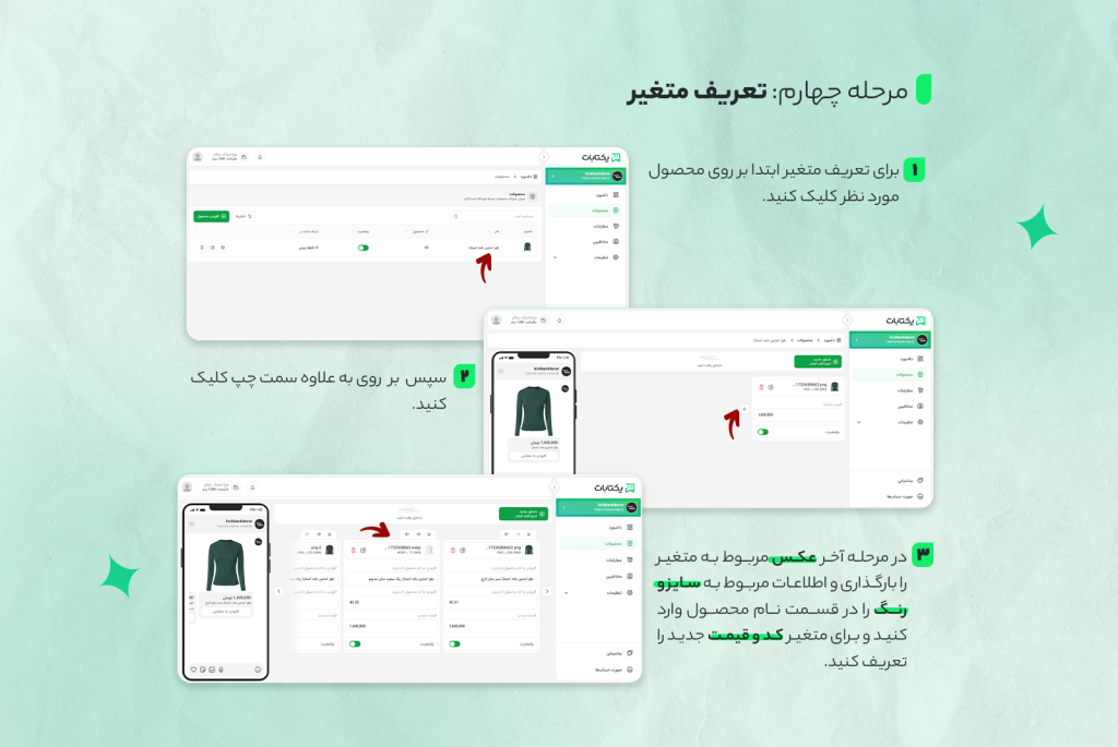 - در بخش افزودن به نام محصول، ویژگیهای خاص هر یک را بیفزایید تا مشتری تفاوت محصولات را متوجه شود.
