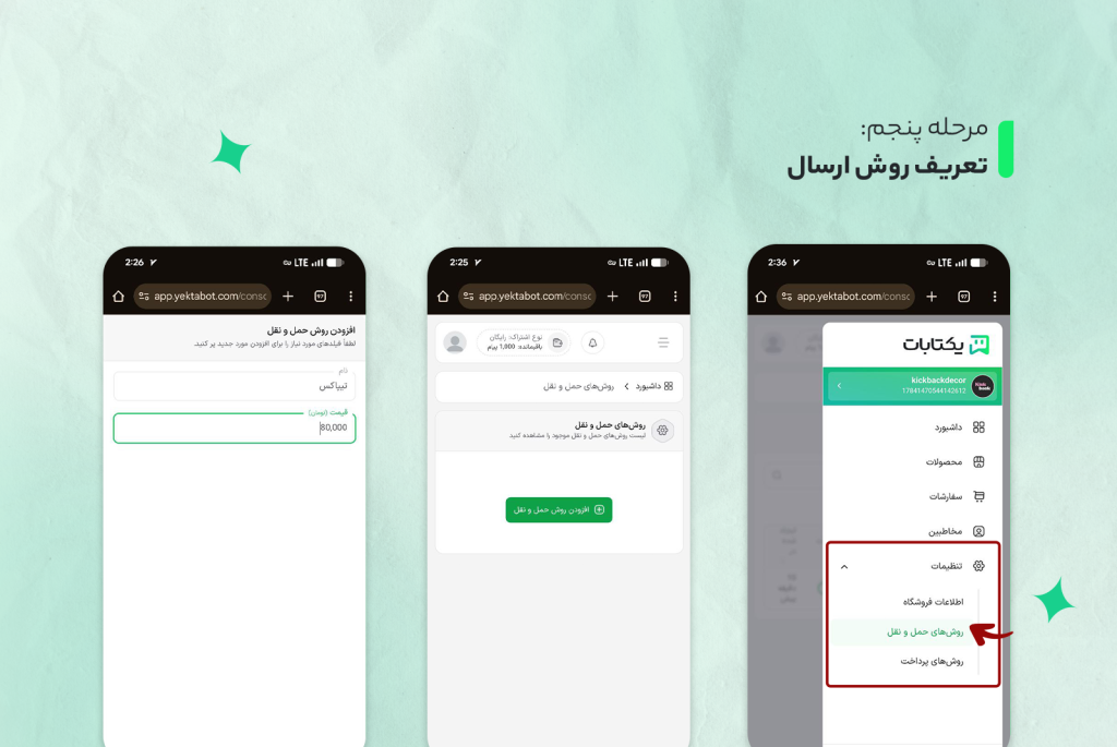 تعریف روش ارسال و پرداخت